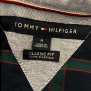 Tommy Hilfiger Vintage Men's Plaid Dress Shirt - Navy and Green Size Medium