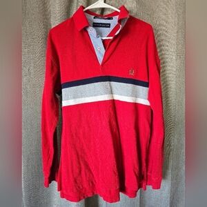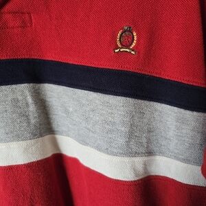 Tommy Hilfiger Vintage Mens Red Long Slv Striped Rugby Polo 2001 Y2K Size L