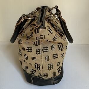 Tommy Hilfiger Vintage Monogram Tote Bag Black Beige Y2k Retro Designer