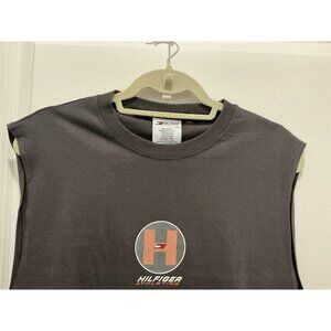 Tommy Hilfiger Vintage Muscle Shirt Large Mens Hilfiger Athletics Front Gray NWT