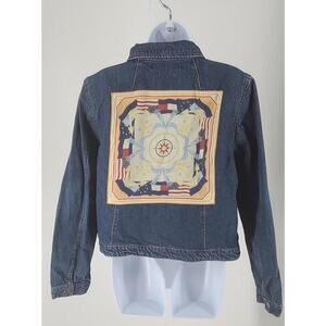 Tommy Hilfiger Vintage Nautical flags women's jean jacket Size XL Country