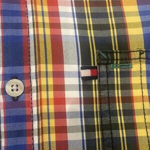 Looking for a classic and stylish addition to your wardrobe? This Tommy Hilfiger vintage plaid button-down shirt is the perfect choice!