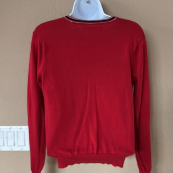 Tommy Hilfiger Vintage Red 90s Button Up Cardigan Striped 100% Cotton Sz Small