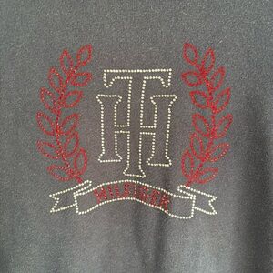 Tommy Hilfiger Vintage Sequin Beaded Blue Red Long Sleeve Tee Crew Neck Top L