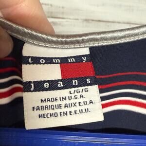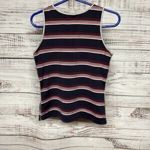 Tommy Hilfiger Vintage Striped V-Neck Tank Large Blue Red