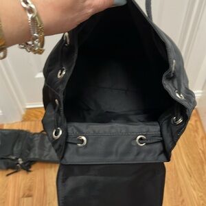 Excellent used condition, cinch style closure, magnetic snaps, adjustable straps, silver hardware