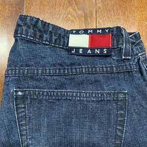 These Tommy Hilfiger Vintage Y2K Dark Denim Boot Cut Jeans are in great condition, offering a reliable and stylish choice perfect for any wardrobe. Featuring a women's size 13/32, these pre-owned jeans offer classic design and quality.