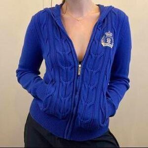 Tommy Hilfiger Vintage Y2K Royal Blue Cable Knit Full Zip Hoodie Jacket