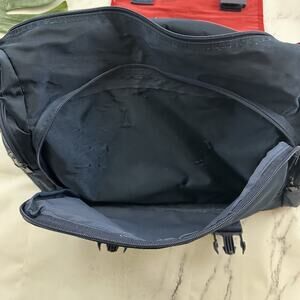 Tommy Hilfiger vintage y2k navy blue and red shoulder messenger bag. It has some spots, please see pictures. It measures about 11 inches tall, about 16 inches long and about 6 inches deep.