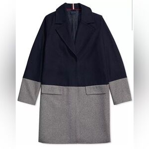 Tommy Hilfiger WOOL LONG coat jacket Color Block LARGE stylish and versatile NWT