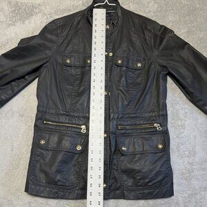 Tommy Hilfiger Waxed Utility Jacket Women's Blk Large With Gold Snaps & Zipper