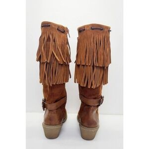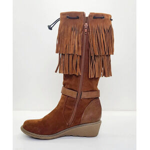 Tommy Hilfiger Wedge Boots Heidi Fringe Mid Calf Western Women's 4