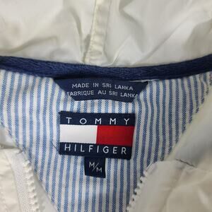 Tommy Hilfiger White 1/4 Zip Hooded Wind Breaker Jacket Top Shirt Unisex M