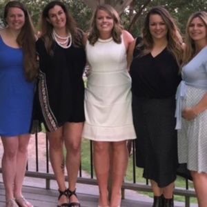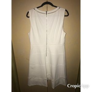 Perfect ONLY WORN ONCE white cocktail dress! Perfect for all things BRIDAL, white parties, summer parties!! Great give in the material, super flattering for someone with curves! A little above the knee for length!