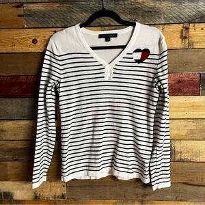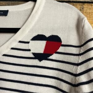 Tommy Hilfiger White And Navy Stripe Heart Sweater Top Size Small