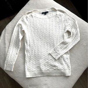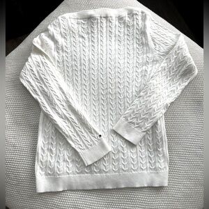 Tommy Hilfiger White Cable Knit Crew Neck Sweater