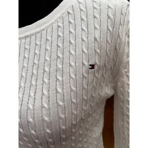 Tommy Hilfiger White Cable Knit Sweater Women’s XS Classic Logo Crewneck