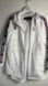 White jacket featuring Tommy Hilfiger logo stripes on sleeves. Hooded design with front zipper. Has stains and discoloration and it’s used condition