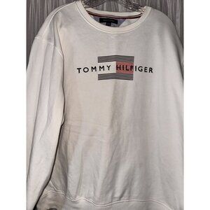 Tommy Hilfiger White Logo Sweatshirt XL Crewneck Cotton/Polyester Unisex Casual