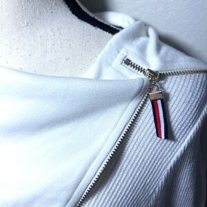 Tommy Hilfiger White Long Sleeve Top size M Zip Cowl Neck Winter Thermal Shirt