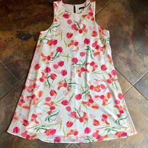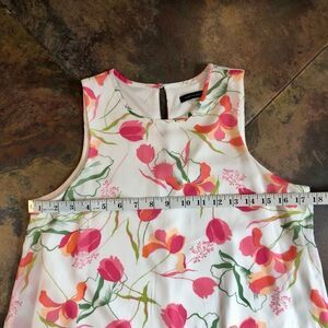 Tommy Hilfiger White Shift Dress Pink Flowers Size 4. Sheer overlay with lining. Sleeveless tank dress with keyhole closure in back. Small snag on side. You can see this in photos. Measurements in photos. In good, pre-loved condition. Comes from a smoke free home.