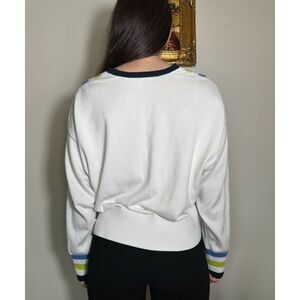 Tommy Hilfiger White Striped Cropped V-Neck Sweater Size Large