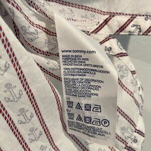 Tommy Hilfiger White and Blue Anchor Patterned 3/4 Length - Size Medium