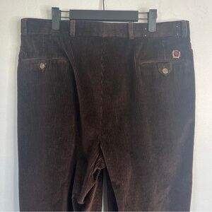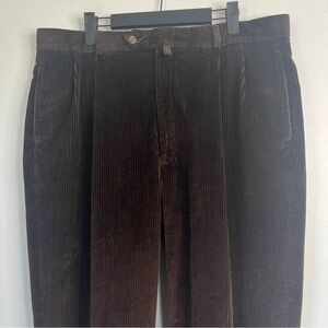 Tommy Hilfiger Wide Corduroy Pleated Cuff Trousers Dark Brown Pants Size 36x30