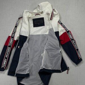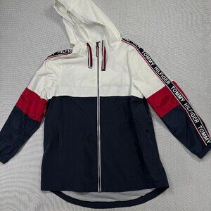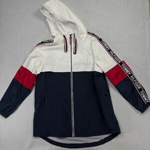 Tommy Hilfiger Windbreaker Jacket Colorblock Navy Red White Zip Front Size S