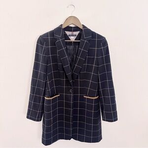 Tommy Hilfiger Window Pane Blazer Long Elbow Patch Equestrian Navy Brown Plaid