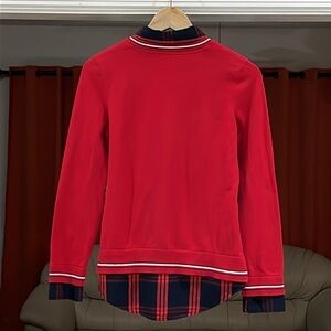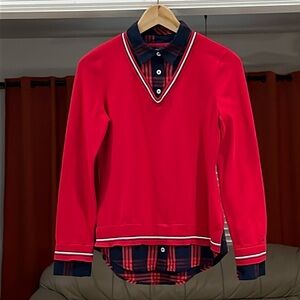 Tommy Hilfiger Windowpane Twofer Sweater Scarlet Multi Size XS