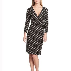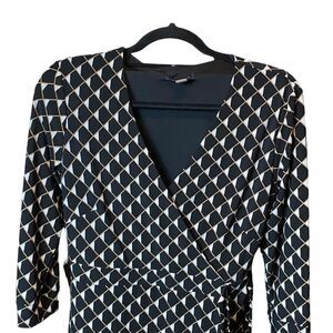 Tommy Hilfiger Wm’s Sz 4 Jersey White All Over Diamond Side Tie Faux Wrap Dress