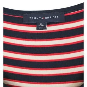 The dress comes in a vibrant multicolor striped pattern with the Tommy Hilfiger logo as an accent. It is a long dress with a bohemian, colorful, rainbow and nautical theme. The dress is perfect for the summer, fall and spring seasons, and it is easy to care for as it is machine washable. This dress is a tall size, specifically XL/TG, and it is handmade in China.
