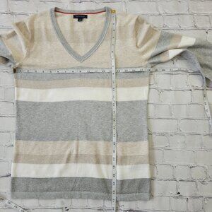Tommy Hilfiger Woman’s V-neck pullover sweater striped cream tan color size M