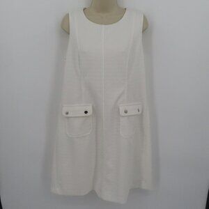 Tommy Hilfiger Women 14 White Houndstooth Sleeveless Sheath Dress Pockets Silver