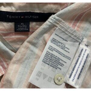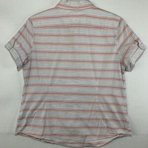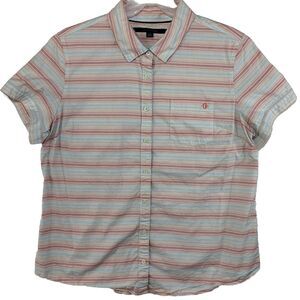 Tommy Hilfiger Women Blouse Size XL Pastels Stripe Button Up Short Sleeve Summer