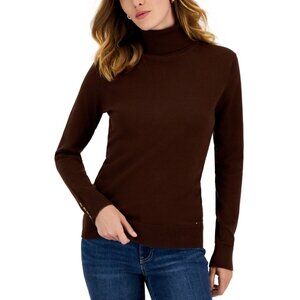 Tommy Hilfiger Women Button-Cuff Turtleneck Stella Sweater Size S Brown MSRP $70