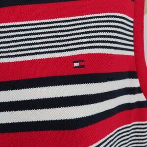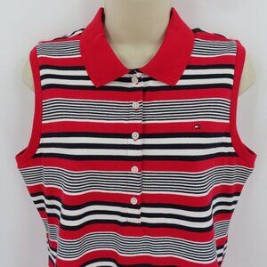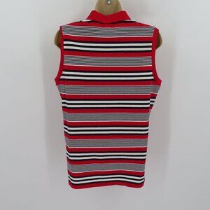 Tommy Hilfiger Women Medium Sleeveless Polo Collared Red Stripe Top Shirt NEW