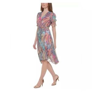Tommy Hilfiger Women Paisley Print Puff-Sleeve Fit & Flare Dress SZ 6 Romantic