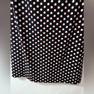 Tommy Hilfiger Women Polka Dot Bell Sleeve Sheath Midi Dress Black White Size 2. Color is black with white and red polka dots. This dress has bell sleeves and had a timeless classic look. Dress is stretchy.