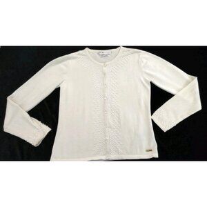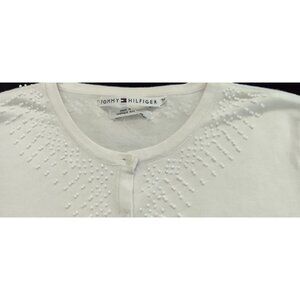 Tommy Hilfiger Women S Ivory Knit Cotton Cardigan Sweater Button Pearls Beaded