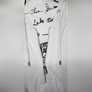 Tommy Hilfiger Womens 1/2 Zip Drawstring Hoodie Top Size M Long Sleeve White