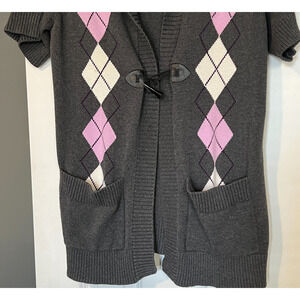 Tommy Hilfiger Womens 1X Cardigan Sweater Argyle Print Toggle Close Short Sleeve.