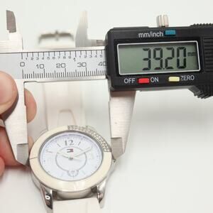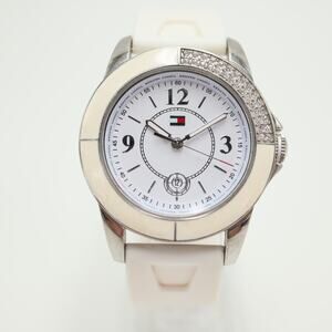 Tommy Hilfiger Womens 39mm Gem Bezel Watch White Silicone Strap w New Battery