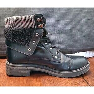 Tommy Hilfiger Womens 9M Dyan Lace Up Fold Ankle Boot Black Faux Leather