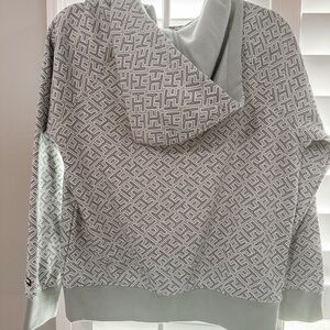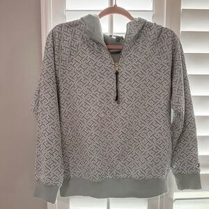 Add a designer touch to your casual days with this Tommy Hilfiger women’s hoodie, featuring an allover TH monogram print. The half-zip design with gold-tone zipper gives it a sporty yet elevated look, while the cozy fleece interior keeps you warm.