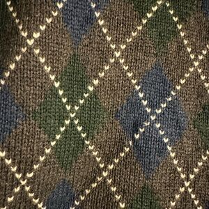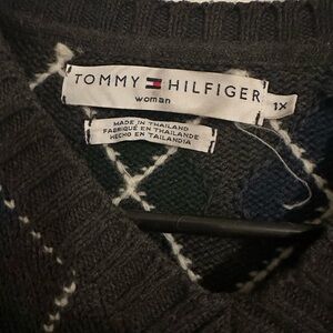 Stay stylish and warm with this Tommy Hilfiger argyle sweater. Featuring a classic green and blue pattern, it's perfect for any occasion.