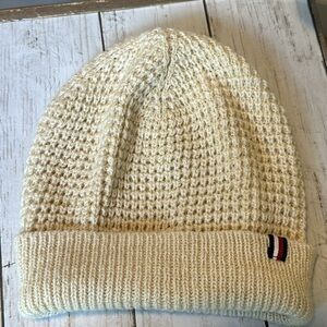 Tommy Hilfiger Women's Beige & Gold Knit Beanie Hat Cap & Scarf Flag Logo.