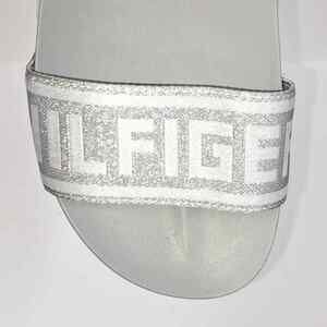 Tommy Hilfiger Womens Bekett Platform Sandals 9 Silver Open Toe Strappy Logo