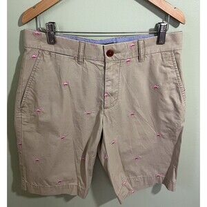 Tommy Hilfiger Women's Bermuda Shorts Tan Pink Embroidered Flamingos Size 29